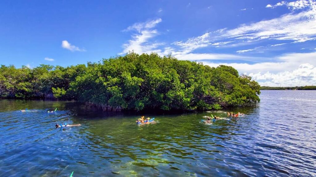 Explore a completely different underwater marine ecosystem in crystal-clear waters of Florida Bay (Less than 7ft deep). Sail to Pelican Key island, and Snorkel at a Protected mangrove island & bird refuge within the greater National Marine Sanctuary waters, along the border of the Everglades National Park.